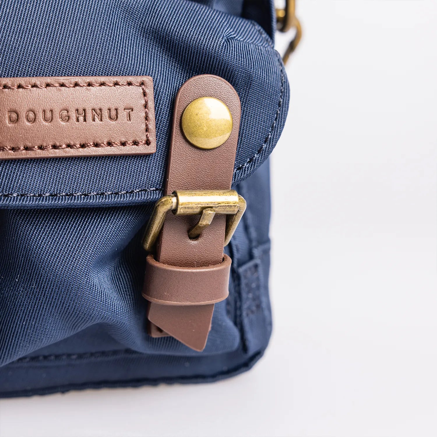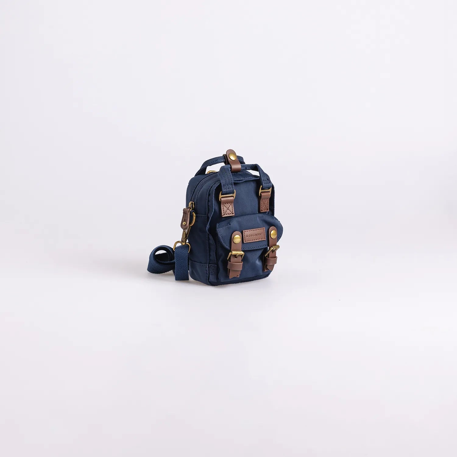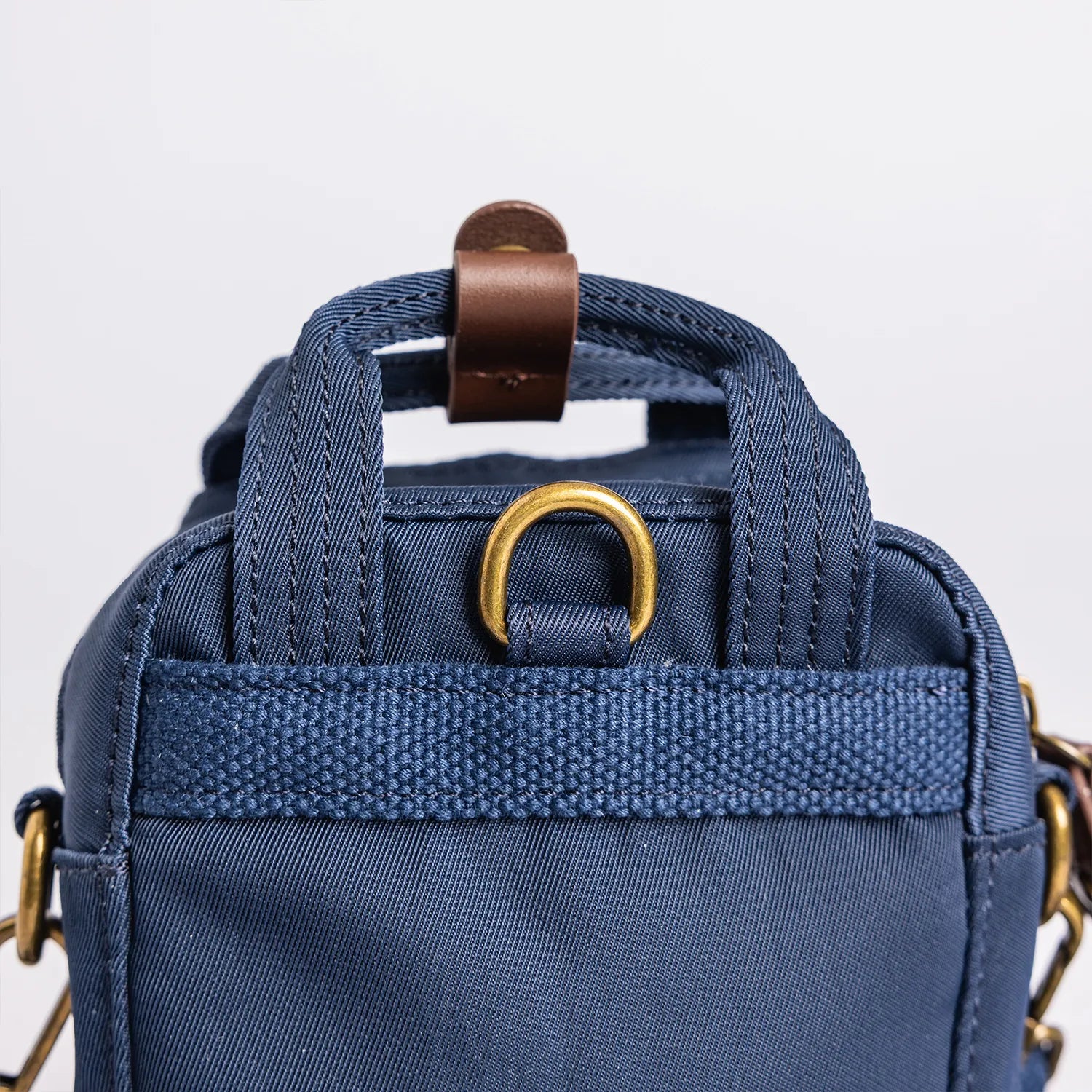 • ネイビーの本体にブラウンのレザーパーツを組み合わせた仕様